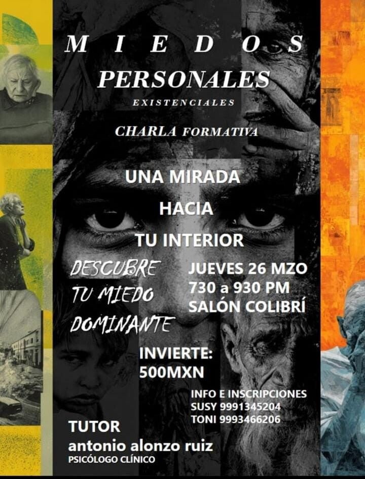 DESCUBRE TU MIEDO DOMINANTE..INSCRÍBETE A ESTA CHARLA FORMATIVA EN MÉRIDA YUCATÁN (MÁS INFORMACIÓN EN LA IMAGEN)
